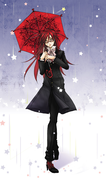 偶々見かけた黒レース模様の真っ赤な傘があまりにも可愛くてグレル仕様だったという絵。