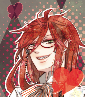 下のグレルちゃんのアップですー。全身入れたイラストってどうしてもお顔が潰れますね~そういえば原作グレルちゃんは上より下の睫毛の方がぱっちりみたいですイケメンかわかわvvvうん、そっちのがお兄さんっぽい上にオカマちゃんっぽいよねwwおいちゃんは睫毛バシバシが好きなんでどうしても上下バシバシにしちゃいますがwwwそしたらただのおねーちゃんになるというジレンマのスバイラル…orz